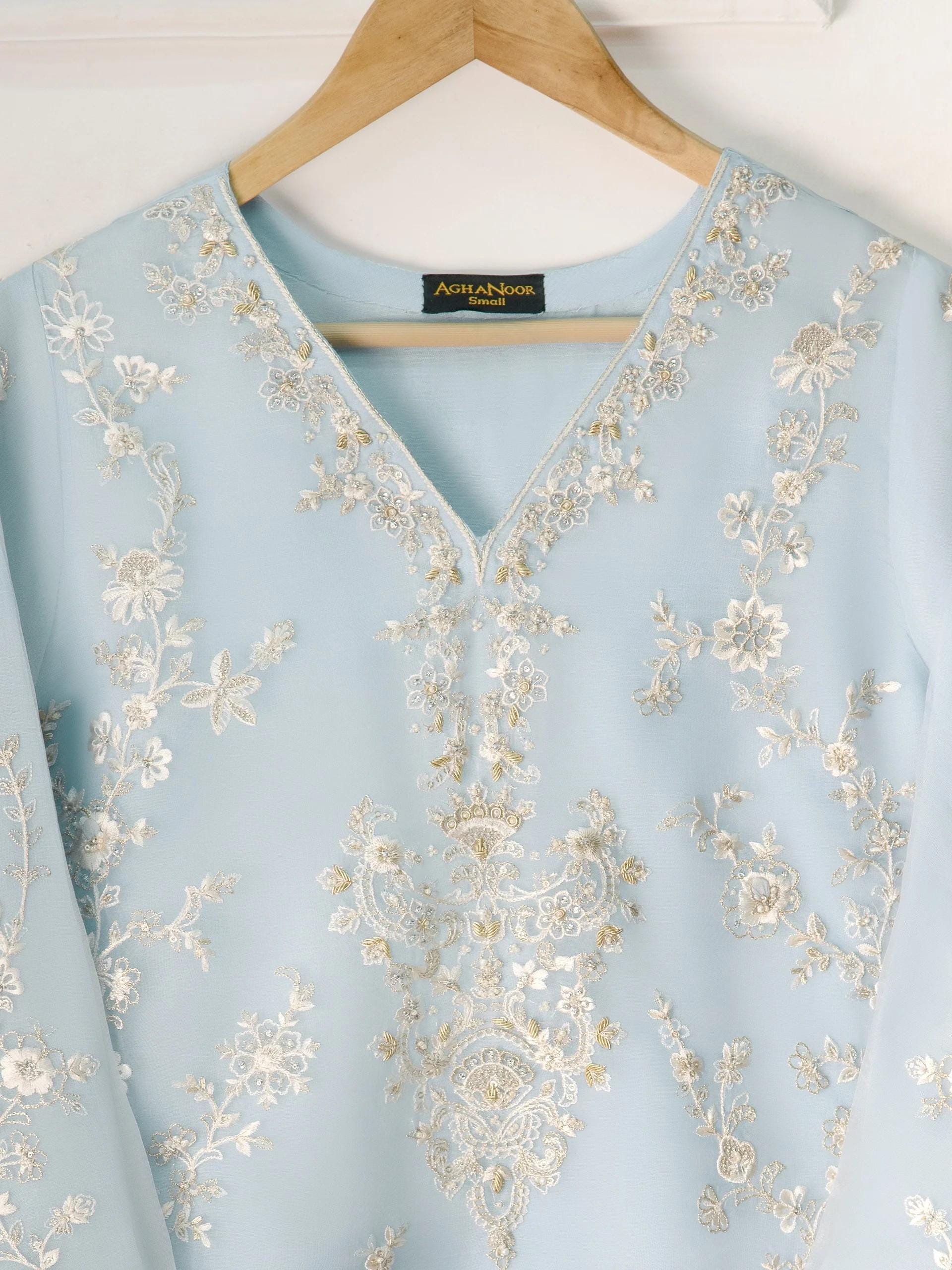 Agha noor 2 Piece - Pure Organza Embroidered Suit (Size - Large)