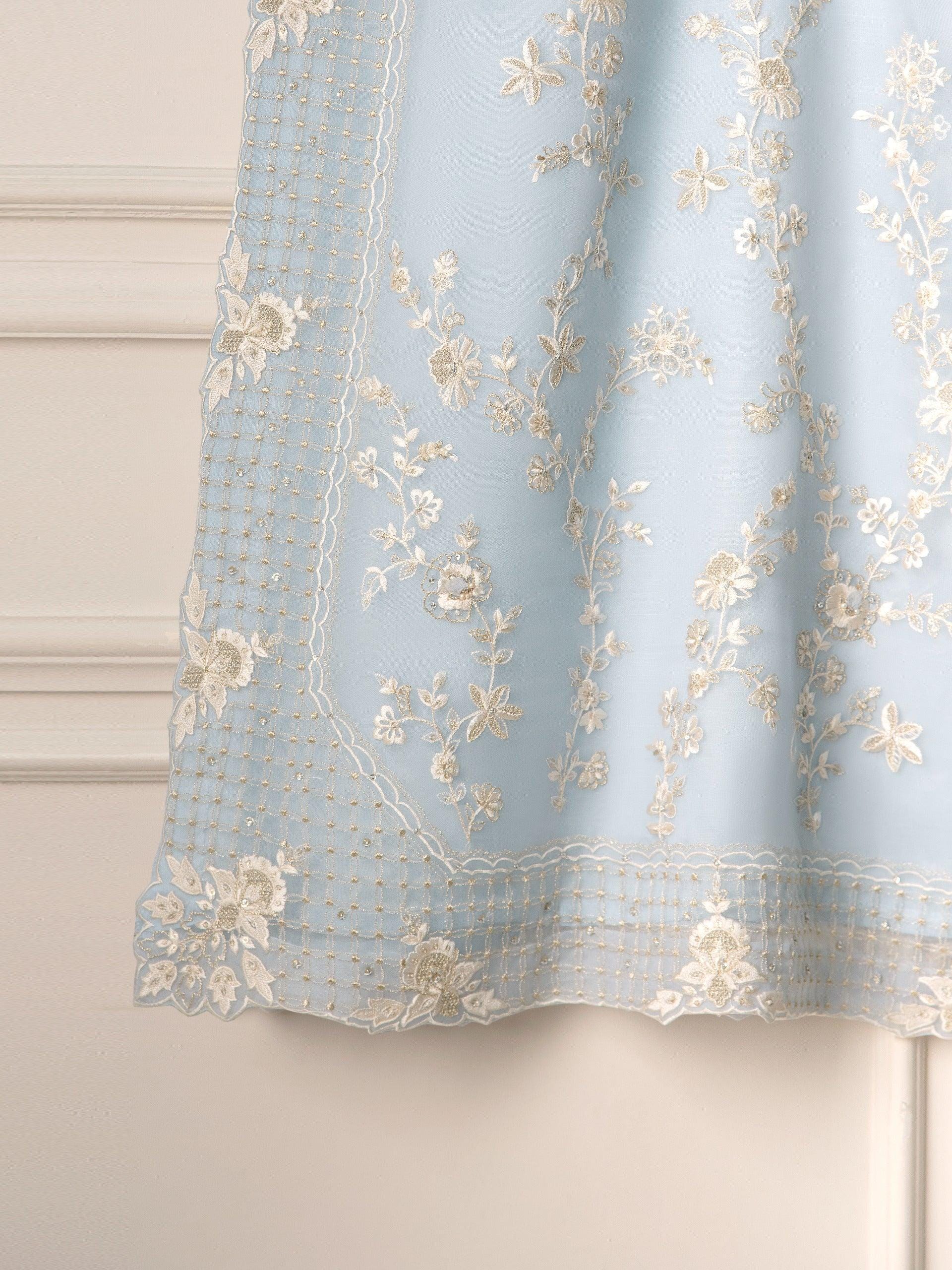 Grey embroidered organza straight shirt crafted with utmost care and attention to detail. The shirt features intricate embroidery on the front and sleeves, adding a touch of timeless charm.