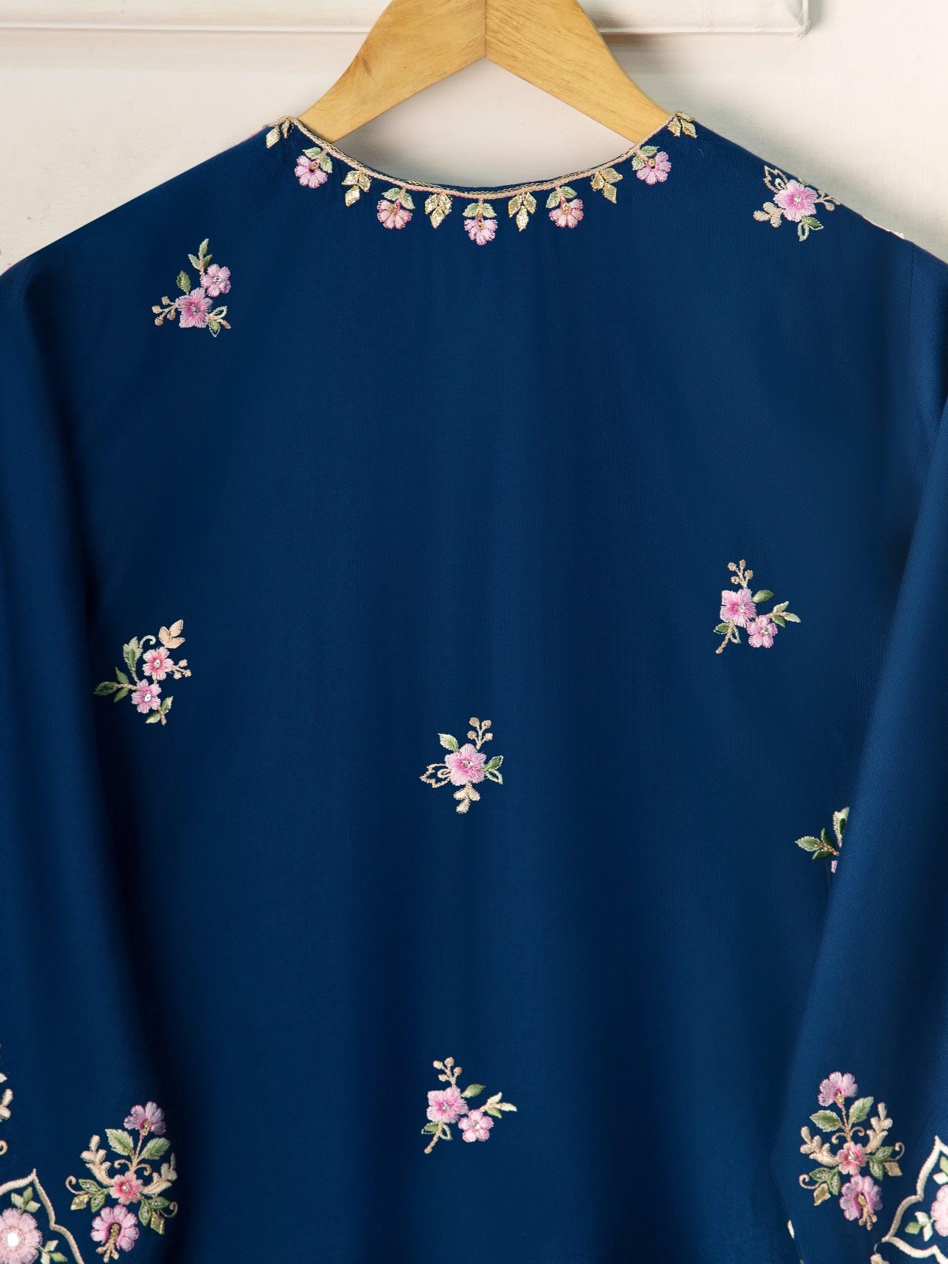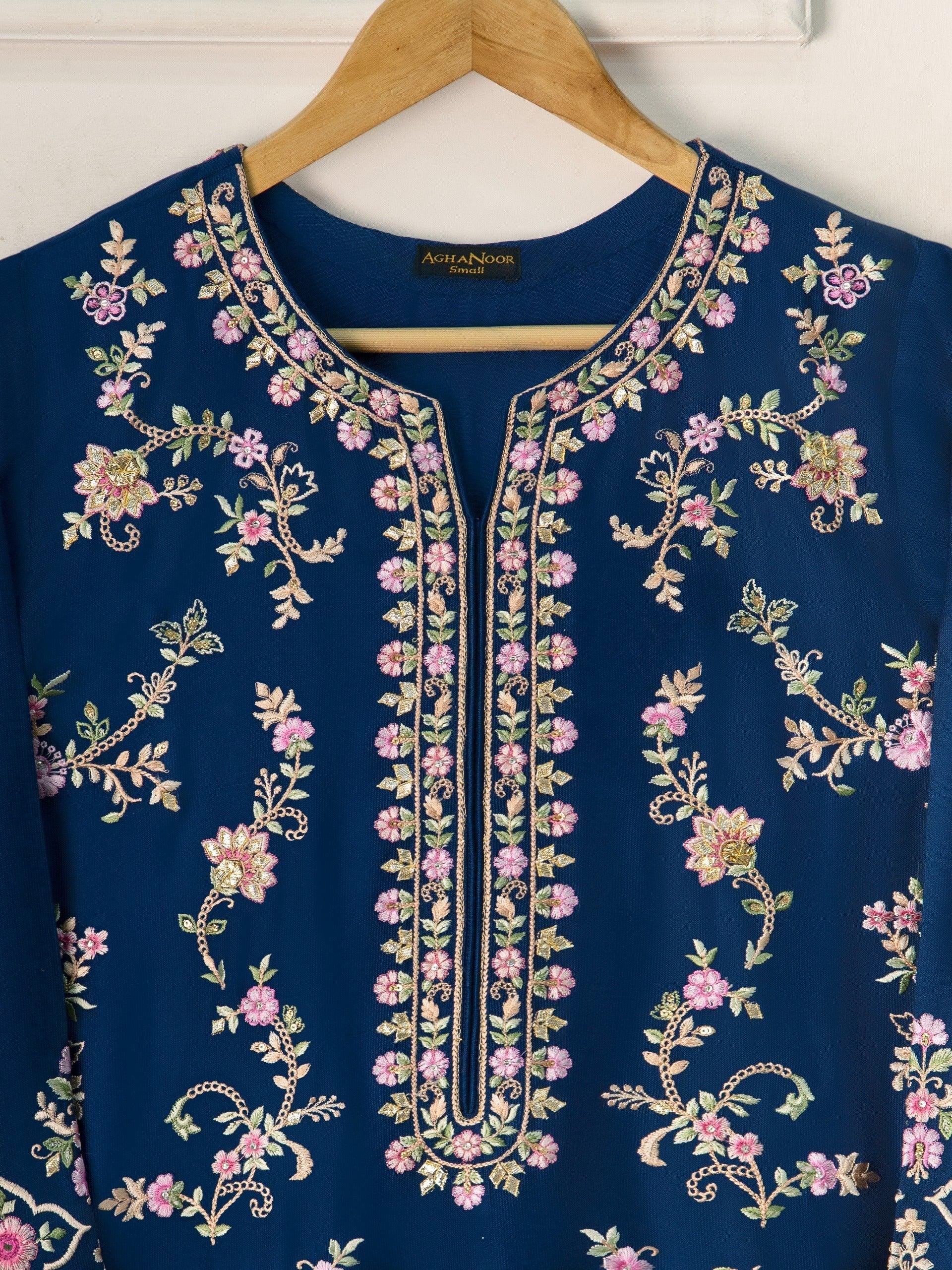 Agha noor 3 Piece Pure Silk Heavily Embroidered Suit -Size (Large) - Navy Blue